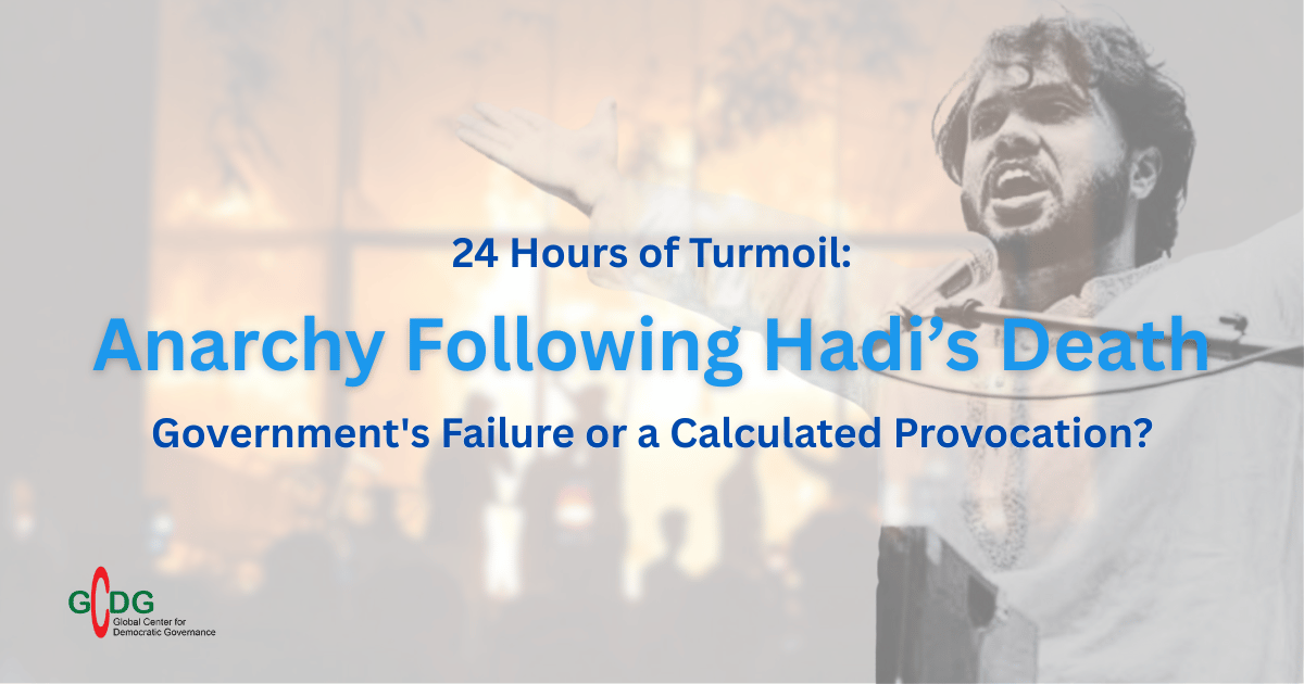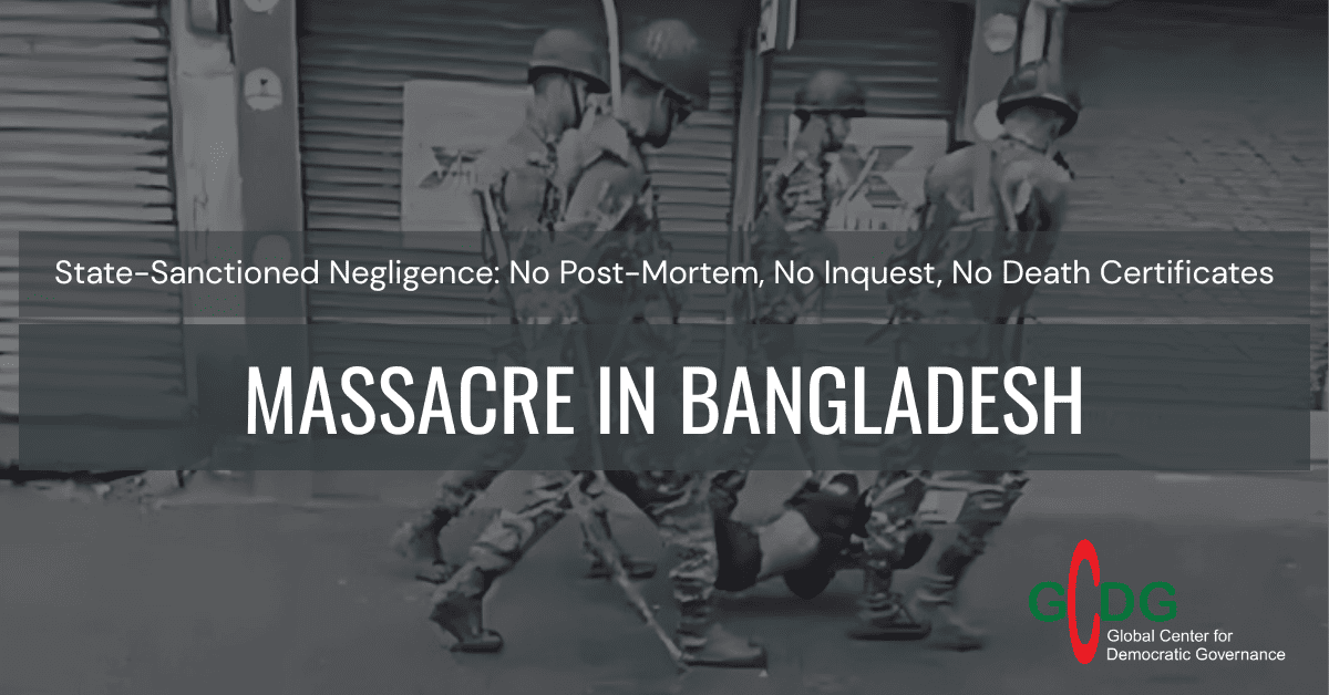 On July 16, 2025, a peaceful resistance in Gopalganj against the National Citizens Party’s (NCP) “March to Gopalganj” turned into a brutal massacre, with at least five civilians killed and dozens injured by military and law enforcement forces. Backed by the interim government under Dr. Muhammad Yunus, the NCP has waged a violent campaign targeting Awami League supporters, religious minorities, and pro-democracy activists. This report by the Global Center for Democratic Governance (GCDG) documents grave human rights violations, including extrajudicial killings, arbitrary arrests, the destruction of national monuments, and military attacks on civilians. The people of Bangladesh are now demanding justice, accountability, and the restoration of democratic governance through a free and fair election.