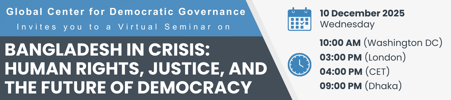 Please register by completing the form below: Name Designation Organization Email Address Country I want to join in the Virtual Seminar on "Bangladesh in Crisis: Human Rights, Justice, and the Future of Democracy"
